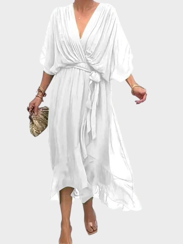 Airy, feminine, and timelessly beautiful – Aese is the dress that embraces you with every movement and highlights your natural elegance. Made from high-quality flowing polyester chiffon, Aese combines stylish lightness with a high level of comfort. Its flattering silhouette, soft V-neckline, and elegant design make this dress the perfect companion – whether for sunny days, festive occasions, or a stylish everyday look.