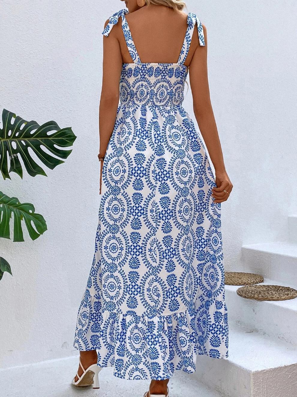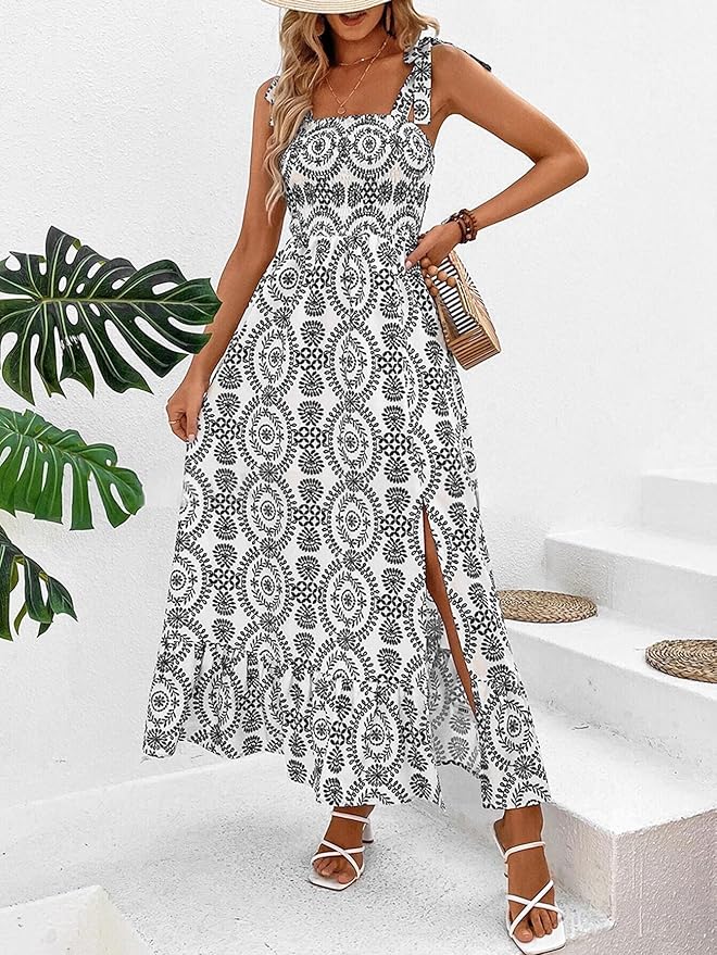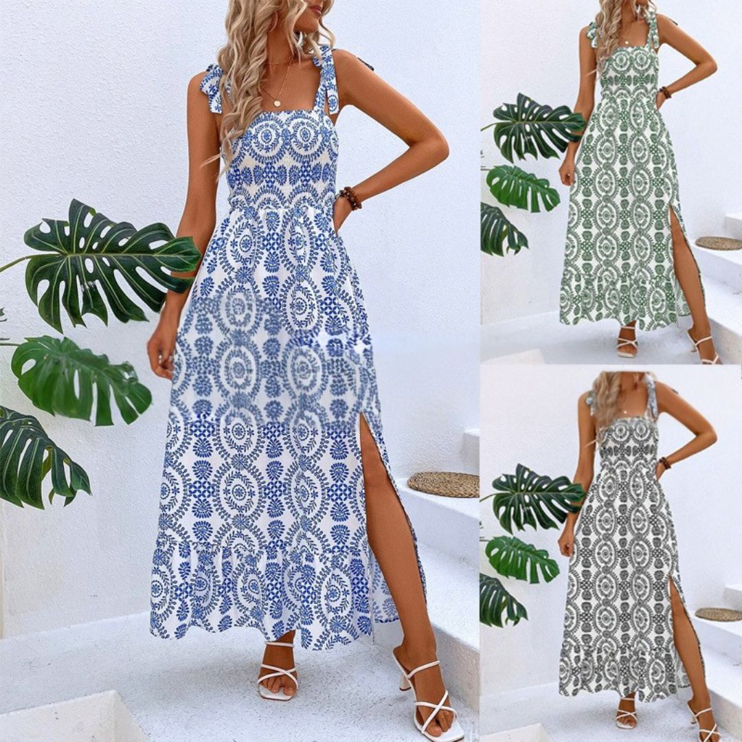 Breeze through summer in timeless style. With its refined silhouette and lightweight, breathable fabric, this dress offers the ideal blend of comfort and confidence. Whether you're enjoying a coastal stroll, meeting friends for lunch, or attending an alfresco event, this piece brings effortless sophistication to every occasion. The graceful slit adds a touch of charm, while the eye-catching print keeps your look fresh and feminine.