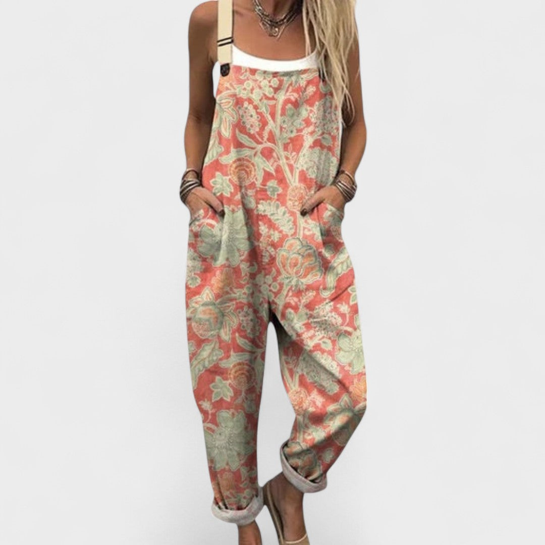 With a vintage-inspired floral pattern, this sleeveless midi dress combines romantic charm with modern freshness. The loose fit and side pockets make it practical and comfortable to wear, ideal for sunny days and relaxed outings. The lightweight fabric and floral design in soft tones evoke the beauty of classic gardens in a relaxed and elegant look.